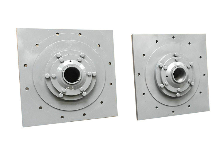無支點(diǎn)機(jī)架。機(jī)架本身無軸的支乘點(diǎn),攪拌軸是以減速機(jī)輸出軸的兩個(gè)支承軸為受力點(diǎn),可用于傳遞小功率,不受或只受較小軸向負(fù)荷、攪拌不太強(qiáng)烈的攪拌裝置。攪拌軸與減速機(jī)的聯(lián)結(jié)須用剛性連軸器,特別是以D型夾殼連軸器或A、C三分式連軸器為佳。