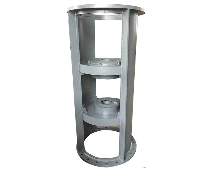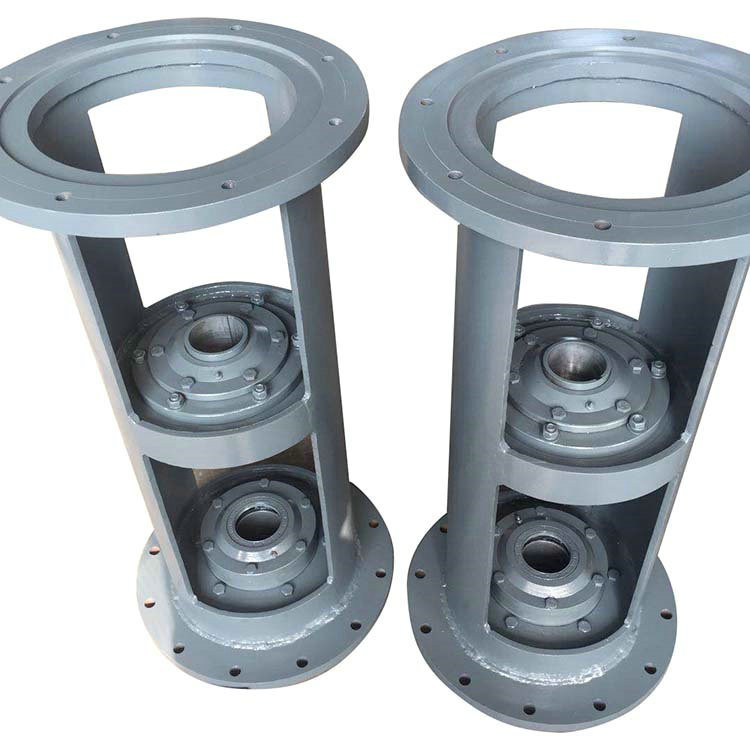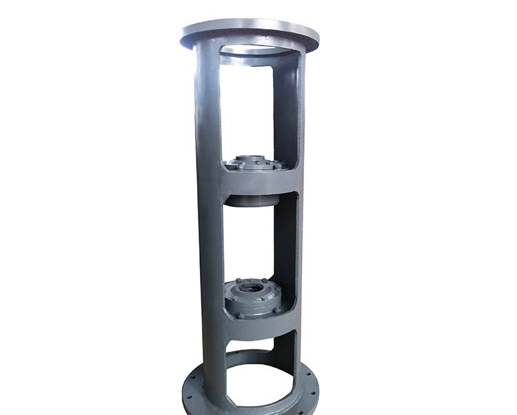 ③軸封本體設有可以或許作為支點的軸承;④在攪拌設備內,攪拌軸中部設有導向軸承,可以或許作為一個支點。雙支點機架機架中間設有兩個獨立支承,適用于重攻擊負載或對攪拌密封拆卸有高要求的特殊場所。加快機輸出軸與攪拌軸連接須采用彈性聯軸器。當不具備選用單支點或無支點機架的條件時,應選用雙支點機架。